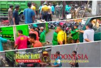 RI-1.com — Denpasar, Personel Polsek Denpasar Utara bersama dinas terkait melaksanakan kegiatan pembersihan material pasca banjir di kawasan Pura Taman Biji, Jalan Kenarok