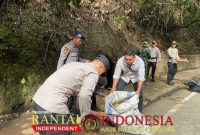 RI.1.com – Klungkung, Personel Polres Klungkung bersama TNI Kodim 1610 Klungkung dan staf kebersihan Desa Banjarangkan melaksanakan aksi bersih-bersih material longsor di kawasan
