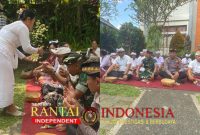 RI.1.com, Dalam rangka menjaga keamanan dan keselamatan warga saat pelaksanaan tradisi keagamaan, Babinsa Desa Lebih Koramil 1616-01/Gianyar Serka I Wayan Suama bersama personel Sabhara