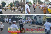 Abiansemal – RI-1.com, Personel Polsek Abiansemal melaksanakan kegiatan pengamanan dan pengaturan lalu lintas terkait pelaksanaan upacara keagamaan yang berlangsung di wilayah Kecamatan Abiansemal, Kamis