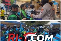 RI-1.com — Malang, Kepolisian Resor Kota Malang Kota membagikan 2.000 helm dan 2.000 rompi kepada pengemudi ojek online (Ojol) usai apel Kamtibmas Jogo Jatim.