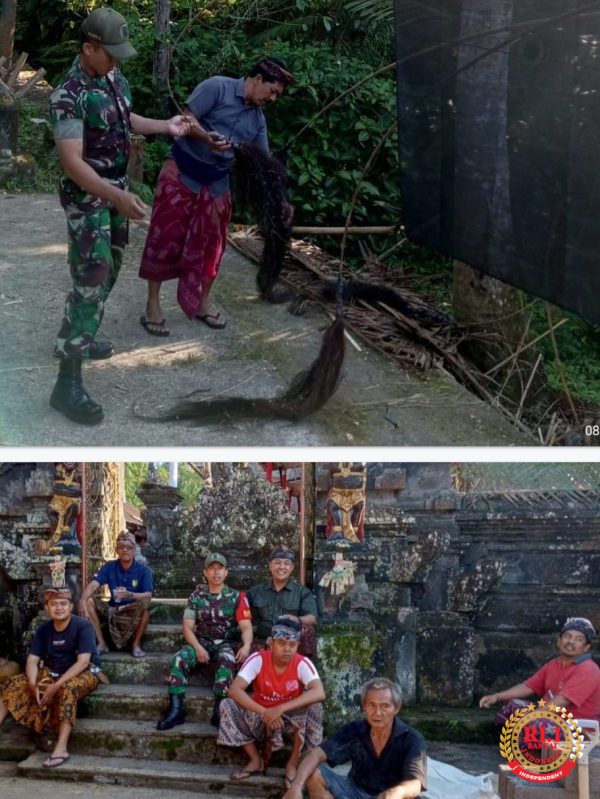 Kehadiran Babinsa di tengah masyarakat tidak hanya sebatas tugas pengamanan, namun juga menjadi wujud nyata TNI manunggal dengan rakyat. Dalam kegiatan ngayah kali ini, Peltu I Made Setiasa bersama warga Desa Buruan bergotong royong membersihkan areal pura, menata sarana upacara, serta membantu pembuatan perlengkapan yang akan digunakan dalam upacara tersebut.
