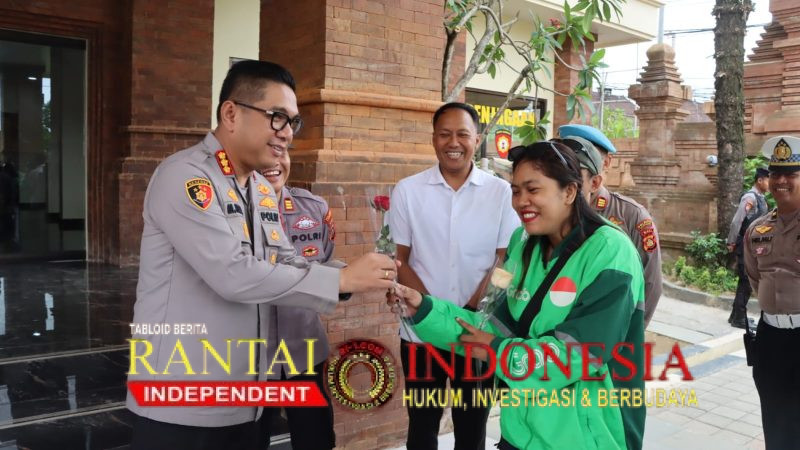 Kapolresta Denpasar, Kombes Pol. Muhammad Iqbal Simatupang, S.I.K., M.H., menerima langsung para peserta aksi di depan Gedung SPKT Polresta Denpasar. ini Sebagai bentuk simbolis kemitraan, perwakilan Ojol juga menyerahkan bunga kepada Kapolresta dan personel Polresta Denpasar.