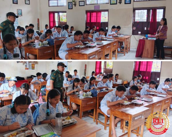 RI.1.com | Tabanan – Babinsa Desa Bajera,  Koramil 1619-02/Selemadeg, Serda Ismail Fahmi, melaksanakan atensi kegiatan pendistribusian makan bergizi gratis di beberapa sekolah di Desa Bajera. Kegiatan ini berlangsung di Dapur Umum SPPI Kec. Selemadeg, Rabu (27/8/2025).