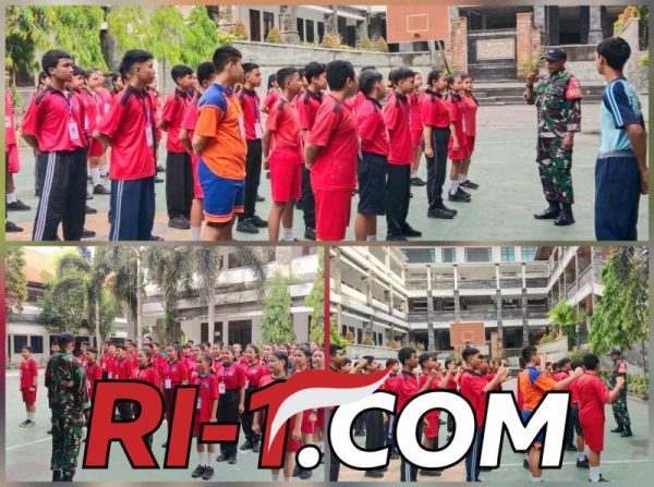 RI-1.com – Badung, Babinsa Desa Kutuh, Serka Dominggus Mai Sila, dalam rangka melaksanakan kegiatan membangun karakter calon OSIS SMPN 5 Kuta Selatan dengan melatih ketangkasan baris-berbaris (PBB). Kegiatan ini berlangsung di Lapangan SMPN 5 Kuta Selatan Desa Kutuh, Kecamatan Kuta Selatan, Kabupaten Badung. Kamis, (23/10/25).