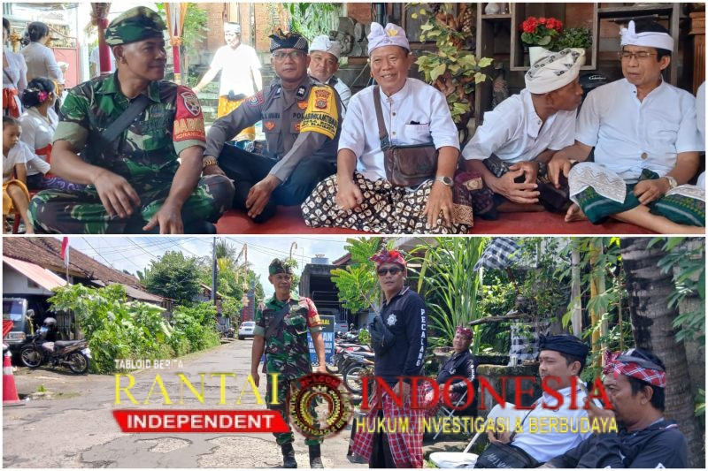 RI-1.com — Gianyar, Minggu (21/9/2025) Dalam rangka mendukung kelancaran kegiatan adat di wilayah binaan, Babinsa Desa Bona Koramil 1616-04/Blahbatuh Serda I Nyoman Widastra bersama Bhabinkamtibmas Desa Bona Aiptu I Made Arta Arnawa menghadiri undangan sekaligus mendukung keamanan Upacara Rsi Yadnya Dikas Parisa atas nama Ida Bagus Putu Oka Yadnya, S.T. dan Ida Ayu Ketut Murdini, S.Pt., M.Si., bertempat di Griya Gede Kumpul, Banjar Persedana, Desa Bona, Kecamatan Blahbatuh, Kabupaten Gianyar.