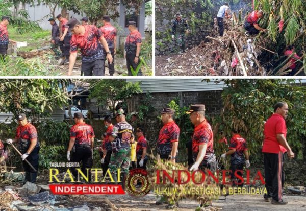 Berlanjut di Jalan Trenggana, Polsek Dentim Bersama TNI, Brimob, Kecamatan, dan Instansi Terkait Bersihkan Sungai Buluh