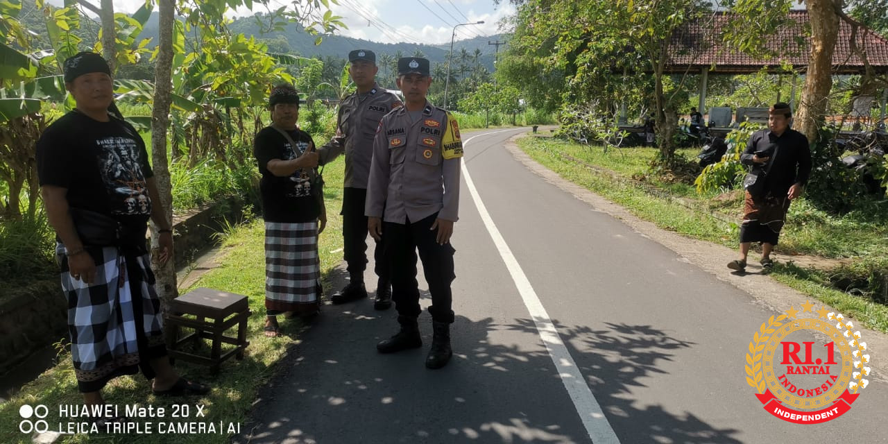 Bhabinkamtibmas Desa Pikat, Polsek Dawan, Polres Klungkung, bersama pecalang dan personel Polsek Dawan melaksanakan pengamanan kegiatan Launching dan Bedah Buku Bhaerawa Jnana yang bertempat di Pasraman Sri Taman Ksetra, Desa Pikat, Dawan, Klungkung, (30/8).
