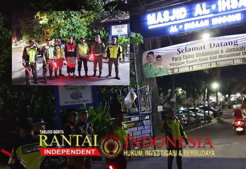 Denpasar – RI-1.com,   Bhabinkamtibmas Desa Sanur Kaja bersama aparat keamanan lainnya melaksanakan pengamanan peringatan Maulid Nabi Muhammad SAW 1447 H/2025 M yang digelar oleh PW GP Ansor Bali dan PW Muslimat NU Bali di Masjid Al-Ihsaan, Hotel Inna Grand Bali Beach, Sanur, Selasa (16/9) malam.