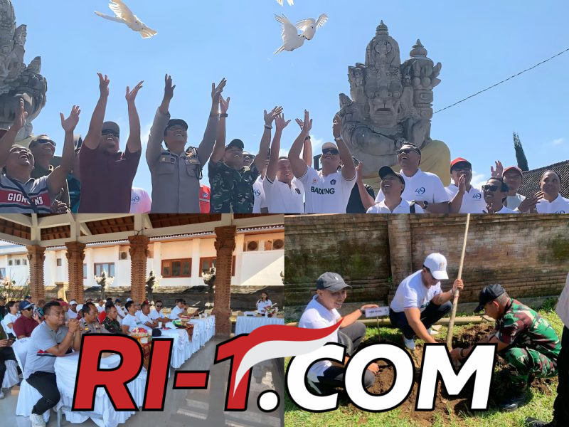 RI-1.com — Badung, Danramil 1611-06/Petang, Kapten Inf I Nyoman Suarka, menghadiri kegiatan program penghijauan dalam rangka HUT Ke-49 Perumda Air Minum Tirta Mangutama. Kegiatan ini berlangsung di Areal Jaba Pura Puseh Desa Sulangai, Kecamatan Petang, Kabupaten Badung. Jum’at, (17/10/25).