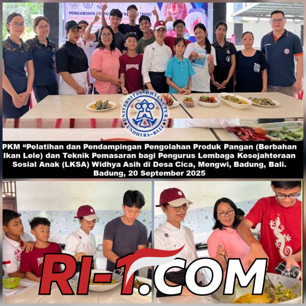Badung –  RI-1.com,   Bertempat di LKSA Widhya Asih Badung, yang berlokasi di di Jl. Sang Hyang, Br. Cica, Abianbase, Mengwi, Badung, Bali, Sabtu 20 September 2025 seluruh pengurus dan staf LKSA Widhya Asih Badung telah mengikuti kegiatan Pengabdian Kepada Masyarakat (PKM) Hibah PT dengan tema “Pelatihan dan Pendampingan Pengolahan Produk Pangan (Berbahan Ikan Lele) dan Teknik Pemasaran bagi Pengurus Lembaga Kesejahteraan Sosial Anak (LKSA) Widhya Asih di Desa Cica, Mengwi, Badung, Bali.