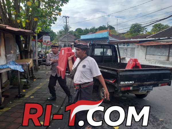 Gianyar — RI-1.com | Dalam rangka persiapan pengamanan Karya Padudusan Agung di Pura Samuan Tiga, Desa Bedulu, Bhabinkamtibmas Desa Bedulu Aiptu I Putu Suadnya melaksanakan kegiatan gotong royong bersama pecalang setempat pada Senin, 27 April 2026 mulai pukul 08.00 Wita. Kegiatan ini difokuskan pada pembuatan posko pecalang di areal sekitar pura guna mendukung kelancaran dan keamanan selama rangkaian upacara berlangsung.