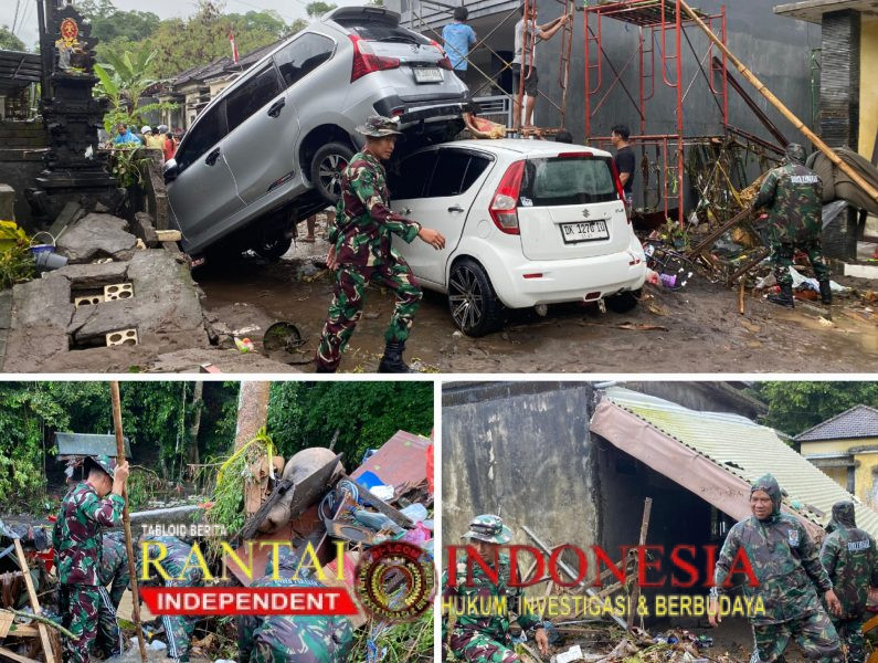 Banjir yang terjadi menyebabkan tumpukan lumpur dan sampah memenuhi halaman rumah warga serta sejumlah akses jalan di lingkungan perumahan. Melihat kondisi tersebut, Kodim 1619/Tabanan bersama aparat desa, masyarakat, dan instansi terkait bergotong royong melaksanakan pembersihan demi mengembalikan kenyamanan serta kesehatan lingkungan warga.