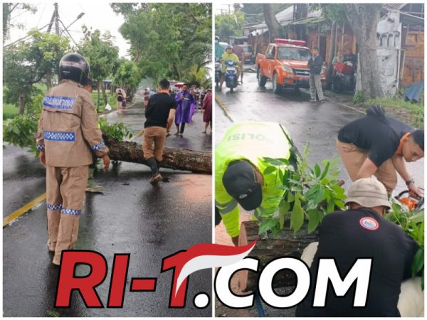 Mengwi | RI-1.com — Kapolsek Mengwi Kompol Anak Agung Gede Rai Darmayasa, S.H., M.H. memimpin langsung proses evakuasi pohon tumbang yang menutupi badan jalan di jalur utama Denpasar – Singaraja, tepatnya di wilayah Desa Sembung, Kecamatan Mengwi, Kabupaten Badung. Sabtu (8/11/2025) sore