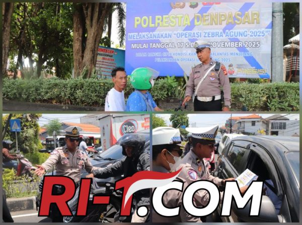 Denpasar – RI-1.com,   Satuan Lalu Lintas Polresta Denpasar melaksanakan Operasi Zebra Agung 2025 di kawasan Traffic Light (TL) Sunset Road, tepatnya di simpang Jl. Imam Bonjol – Jl. Sunset Road, Kuta, Badung, pada Senin (17/11/2025). Kegiatan ini dipimpin oleh KBO Sat Lantas Polresta Denpasar, Ipda Helmi Iskandar, S.H., selaku Kasubsatgas Penegakan Hukum (Dakgar).