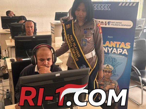 Denpasar — RI-1.com | Suasana pelayanan di Satpas SIM Satlantas Polresta Denpasar tampak tertib dan kondusif. Sejumlah pemohon SIM terlihat mengikuti tahapan ujian teori berbasis komputer dengan serius, didampingi langsung oleh petugas yang sigap memberikan arahan.