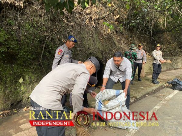 RI.1.com – Klungkung, Personel Polres Klungkung bersama TNI Kodim 1610 Klungkung dan staf kebersihan Desa Banjarangkan melaksanakan aksi bersih-bersih material longsor di kawasan Goa Jepang, Desa Banjarangkan, Klungkung, (13/9).