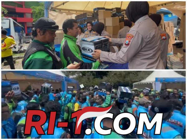 RI-1.com — Malang, Kepolisian Resor Kota Malang Kota membagikan 2.000 helm dan 2.000 rompi kepada pengemudi ojek online (Ojol) usai apel Kamtibmas Jogo Jatim. Helm itu dibagikan beserta 2.300 sak beras SPHP kemasan 5 kilogram atau setara dengan 11,5 ton.