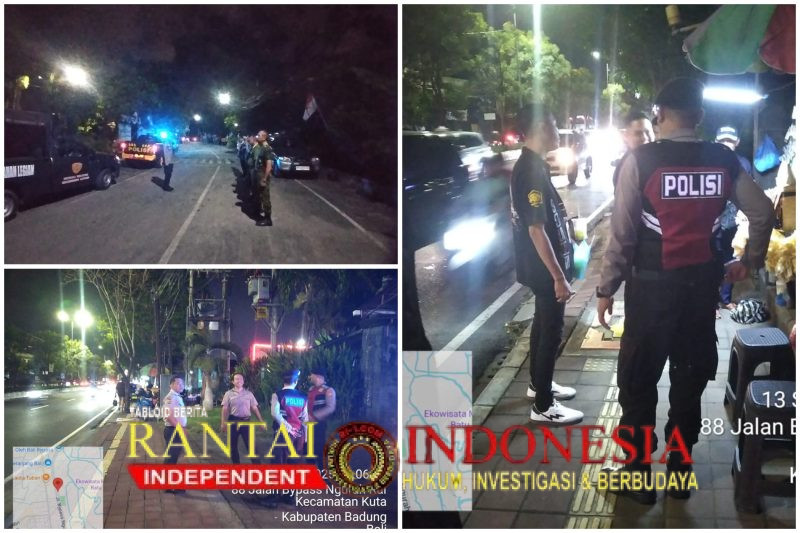 Kegiatan yang dimulai pukul 21.00 Wita ini dipimpin oleh Pawas IPTU Matheus Diaz Prakoso, S.Tr.K., selaku Kanit Reskrim Polsek Kuta, didampingi Padal AIPTU I Wayan Merthadana, S.H., serta dipantau langsung oleh Kapolsek Kuta KOMPOL Agus Riwayanto Diputra, S.I.K., M.H. Dengan melibatkan enam personel gabungan, patroli menyasar sejumlah titik rawan seperti Jalan Dewi Sartika, Jalan Pantai Kuta, Jalan Padma Legian, dan Jalan Bypass Ngurah Rai Tuban.