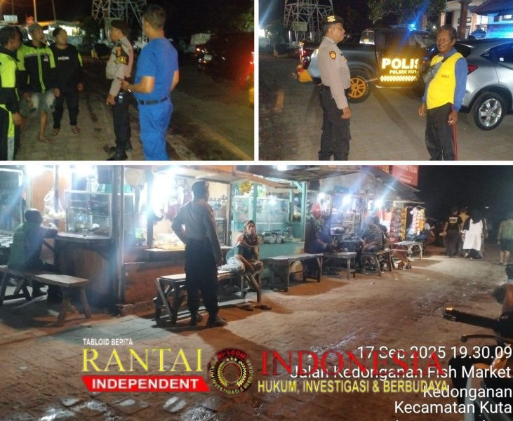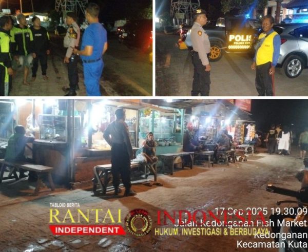 Polsek Kuta melaksanakan kegiatan Cooling System dan Hunting dalam rangka mengantisipasi potensi gangguan Kamtibmas di wilayah hukum Polsek Kuta pada Rabu (17/9/2025) malam.