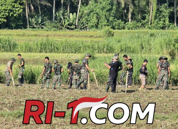 RI-1.com — Badung, Dalam rangka TMMD Ke-126 Kodim 1611/Badung, membantu masyarakat meningkatkan Ketahanan Pangan (Hanpangan) di Desa Bongkasa Pertiwi, Kecamatan Abiansemal, Kabupaten Badung, dalam melaksanakan kegiatan penanaman Ubi ungu. Kegiatan ini merupakan bagian dari program tambahan Ketahanan Pangan yang bertujuan untuk membantu masyarakat dalam pengolahan lahan dan hasil tambahan di Desa Bongkasa Pertiwi. Minggu, (02/11/25).