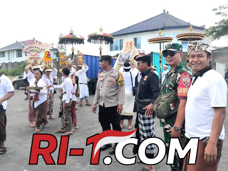 RI-1.com  | Gianyar — Ubud,  Minggu (19/10/2025) Demi kelancaran pelaksanaan kegiatan adat di wilayah binaannya, Babinsa Desa Mas Koramil 1616-02/Ubud Sertu Made Surita bersama Bhabinkamtibmas Desa Mas Aiptu Made Karuna dan Pecalang Desa Adat Banjar Bangkilasan Desa Mas Kecamatan Ubud melaksanakan kegiatan pengawalan serta pengaturan arus lalu lintas dalam rangka Upacara Melasti Ida Sesuhunan Ratu Sakti Pura Merta Sari Banjar Bangkilasan Desa Mas Kecamatan Ubud. Kegiatan ini merupakan bagian dari rangkaian Karya Ngodakan dan Ngeratep yang akan dilaksanakan pada tanggal 21 Oktober 2025.