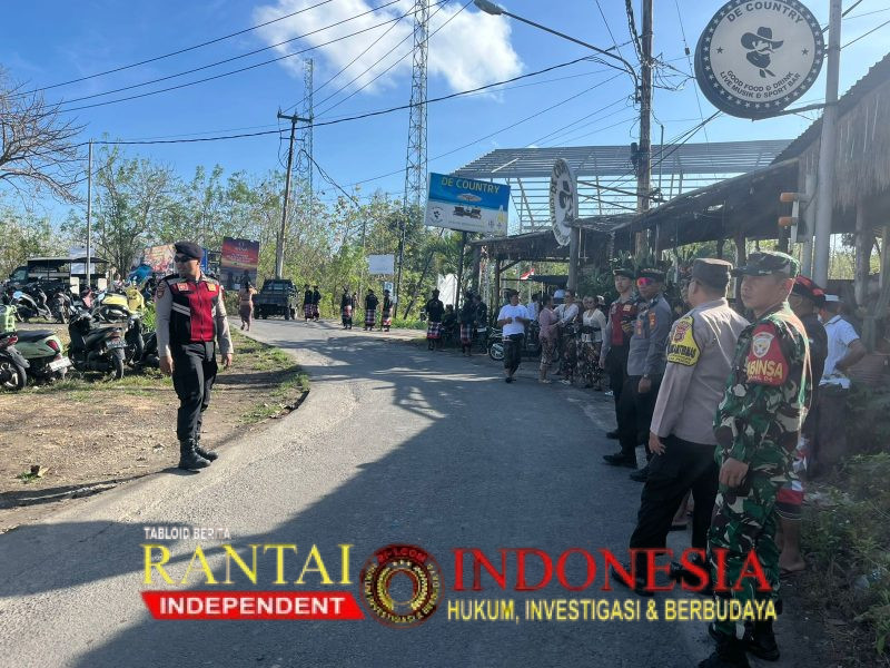 Polres Klungkung – RI.1.com, Anggota Polsubsektor Lembongan yang dipimpin Kapolsubsektor Bripka I Ketut Astrawa bersama Bhabinkamtibmas Desa Lembongan Bripka I Wayan Suwistra, anggota TNI, dan pecalang setempat melaksanakan pengamanan serta pengaturan arus lalu lintas dalam rangkaian upacara Ngulapin pada prosesi ngaben massal di Desa Lembongan, Kecamatan Nusa Penida, Klungkung, (12/9).