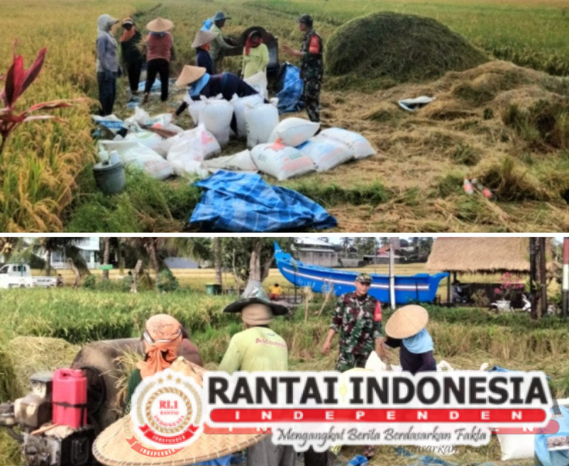 Tabanan –RantaiIndonesia.com, Dalam rangka mendukung ketahanan pangan dan mempererat kemanunggalan TNI dengan rakyat, Babinsa Desa Samsam, Koramil 1619-05/Kerambitan Serma Sigit Catur Erlandung, melaksanakan pendampingan panen padi bersama masyarakat Subak Penyalin, Kec. Kerambitan, Minggu (11/5/2025).